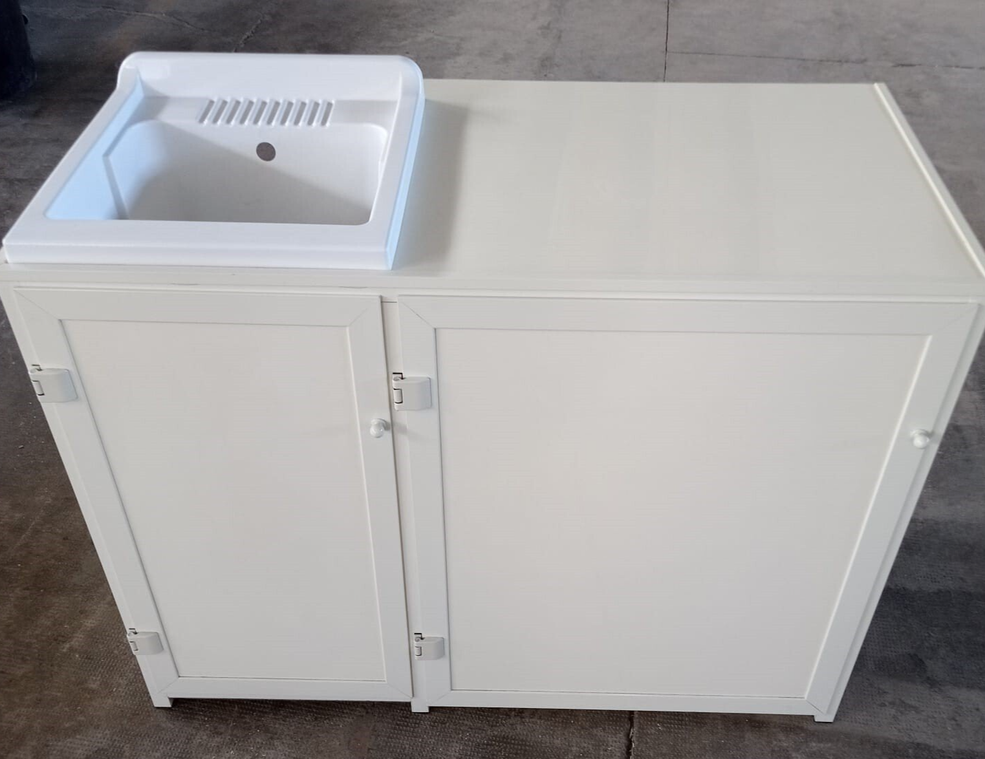 È la struttura che ti permette di spostare sul balcone o sul terrazzo i tuoi elettrodomestici: ad esempio nascondere e proteggere ermeticamente la lavatrice, con dei ripiani per i detersivi.