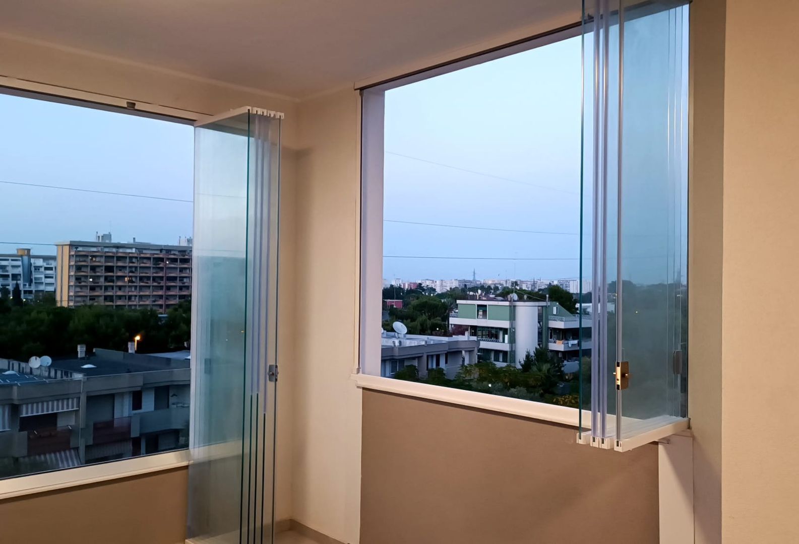 - VETRATE SCORREVOLI: le ante scorrono parallelamente su binari differenti per poi sovrapporsi senza occupare spazio né all’interno né all’esterno degli ambienti è la soluzione ideale per la chiusura di spazi interni ed esterni in cui l’ingombro della vetrata debba essere ridotto al minimo.
